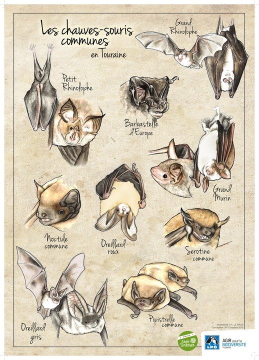 Affiche illustrant les espèces de chauves-souris les plus communes d’Indre-et-Loire.