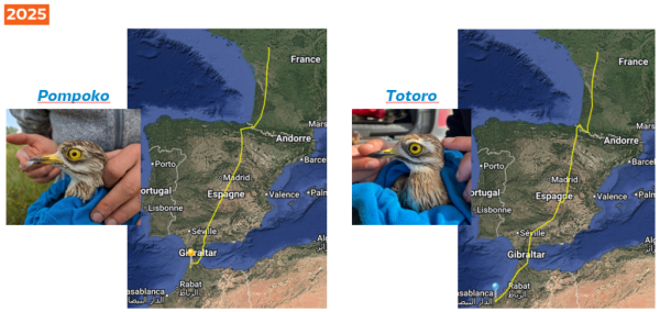 Totoro, le sportif, quitte la région le 14 novembre vers 17 h. Arrivé aux environs de La Rochelle deux heures plus tard, il choisit de couper par la mer. Même pas peur, avec une vitesse moyenne de 65 km/h, il atteindra l’Espagne avant minuit. Il fait une pause de trois jours vers Burgos, puis traverse le pays pour rejoindre son site d’hivernage : les plantations d’oliviers de la région de Cordoue.
