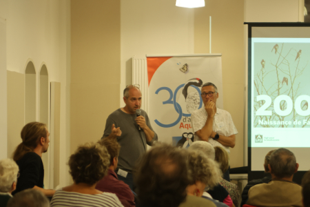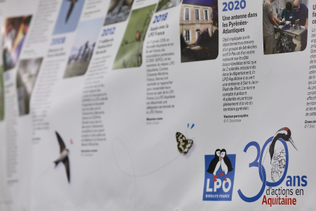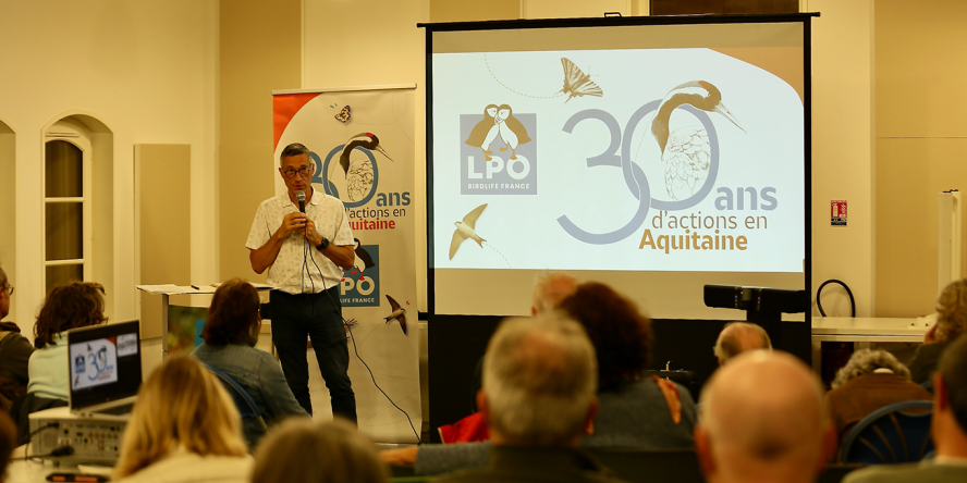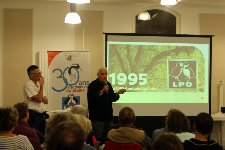 La matinée était consacrée à une rétrospective des 30 ans d’actions de la LPO en Aquitaine. Le fil conducteur ? Une frise retraçant notre histoire en quelques dates marquantes : de la création de l’antenne en 1995, à la signature d’une charte en faveur de la Grue cendrée avec le Parc naturel régional des Landes de Gascogne en 2025, en passant par la création de notre Centre de soins en 2003 ou à la fin du braconnage du Bruant ortolan dans les Landes en 2013.