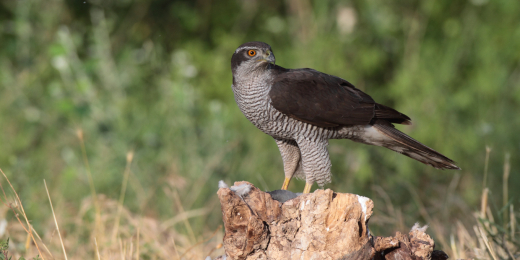Le Circaète Jean-le-Blanc, rapace migrateur, est le plus grand rapace diurne présent dans notre département. Il est spécialisé dans la chasse aux reptiles et notamment les serpents qu’il capture en effectuant des vols stationnaires. Il revient de migration courant avril. Il s’observe durant ses longs vols de chasse ou de déplacement entre ses zones d’alimentation. Les parades sont assez discrètes mais on peut l’observer transportant des proies pour offrir à la femelle ou nourrir ses jeunes. Il niche généralement au sommet d’un gros conifères en surplomb d’un coteau sec, souvent dans des vallons assez calmes et construit un nid épais dans lequel il pond un unique œuf. L’espèce est assez discrète et possède un rayon d’action très large. Ainsi, il faut de nombreuses observations pour espérer localiser les aires de ces grands rapaces.