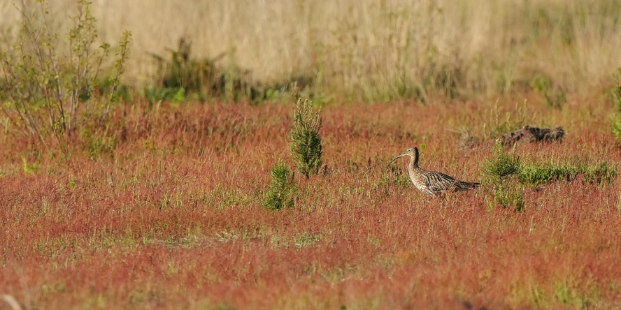 Le Courlis cendré est le plus grand limicole d’Europe ! Il est facilement reconnaissable à son très long bec arqué (jusqu’à 19 cm chez la femelle !). C'est un oiseau méfiant et sensible au dérangement. Le Courlis cendré niche au sol, essentiellement dans les prairies herbeuses et, plus au nord, les landes et les tourbières forestières.