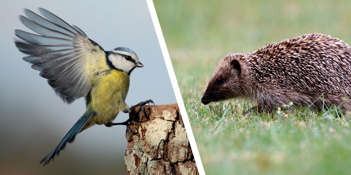 Mésange bleue © Alain B. / Hérisson d'Europe © Raphaël Bussière