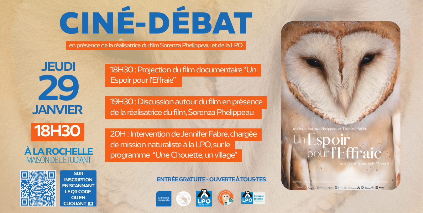 L'association étudiante Les Blairoudeurs et le Groupe Jeunes LPO organisent en partenariat avec l'Université, une projection du film "Un Espoir pour l'Effraie", gratuite et ouverte à tous·tes (pas seulement aux étudiant·es).
