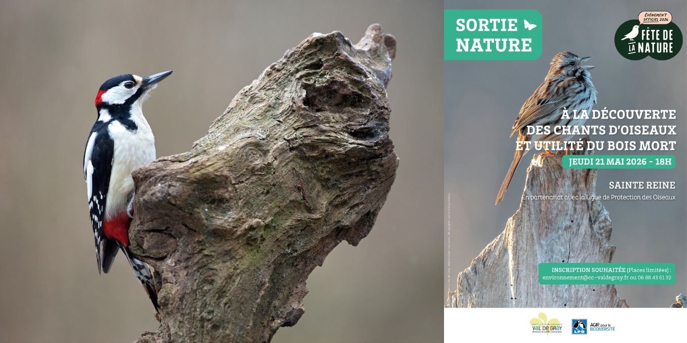 À l'occasion de la Fête de la nature 2026, la communauté de communes du Val de Gray en partenariat avec la LPO Bourgogne-Franche-Comté organise une sortie nature à la découverte des chants d'oiseaux et de l'utilité du bois mort.