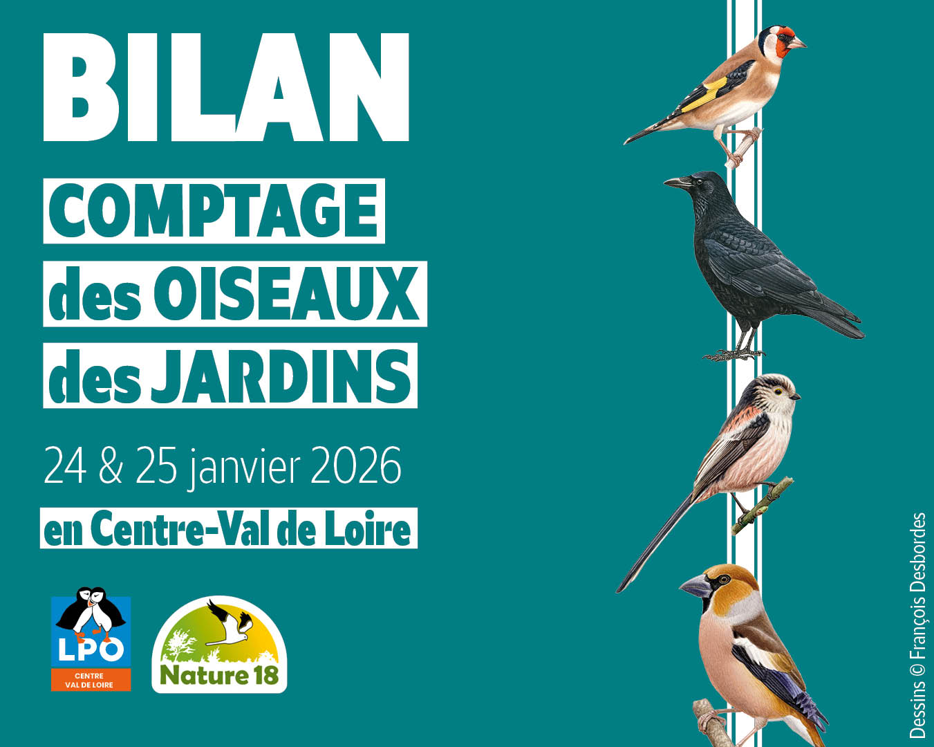 Les 24 & 25 janvier derniers, 974 personnes ont participé au comptage des oiseaux des jardins dans la région Centre-Val de Loire. Cette année, ce sont plus de 35 500 oiseaux de 76 espèces différentes qui ont été observés.