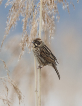 Novembre en campagne : une brise froide agite les dernières feuilles chiffonnées sur les arbres. Mais qui sont ces petits oiseaux qui se nourrissent dans ce champ moissonné ? Des moineaux ? Des pinsons ? Bien camouflés dans leur habit d’hiver entre les tiges flétries, ils poussent des cris et s’envolent : ce sont les bruants des roseaux !