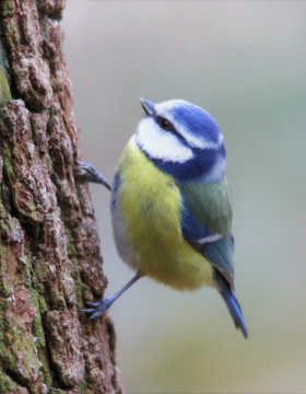 Comme elle est mignonne, cette petite canaille bleue et jaune aux fines bandes oculaires noirâtres ! Elle affectionne les vieux arbres, parcs et jardins : c’est la mésange bleue !
