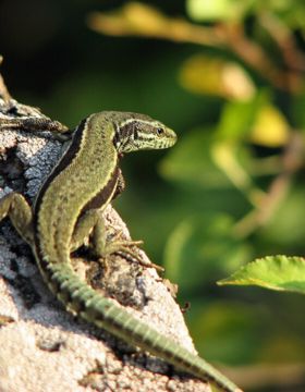Bien furtif, ce petit usager des vieilles pierres : l’été il se chauffe au soleil et décampe au moindre mouvement. C’est le lézard des murailles !
