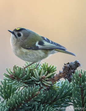 Cinq ou six grammes d’énergie : un « roi-plume » hyperactif, le roitelet huppé!!