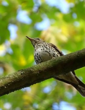 Qui chante ainsi de l’aurore au crépuscule, on dirait presque un merle…mais non, c’est encore plus beau, plus varié…elle se cache tout en haut de cet arbre, la grive musicienne!