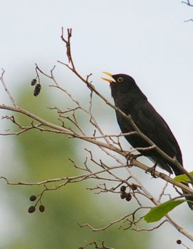 Dans la paix de l’aube ou au crépuscule, un solo magnifique : juché tout là-haut il s’y donne totalement – c’est le merle noir !