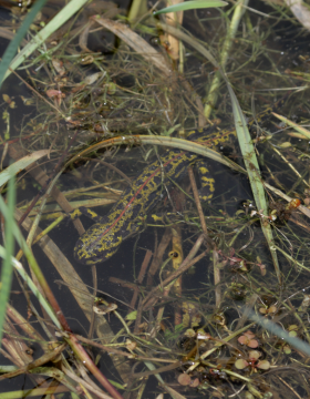 Qu’il est joli ce dragon lilliputien avec son ventre orange et son habit de panthère sur le reste du corps ! Du moins, si vous avez la chance d’en rencontrer un, car il se fait rare chez nous, le triton alpestre !