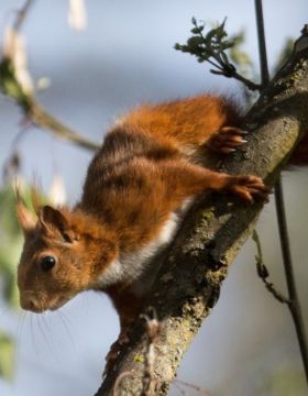 Vous le connaissez tous : un grimpeur acrobate, doté d’yeux vifs en amande, d’oreilles en pinceaux, et d’une superbe queue en panache ; son pelage d’un roux flamboyant l’identifie à coup sûr, le sympathique écureuil roux !
