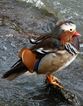 En voici un qui parade fièrement dans sa tenue nuptiale : quelle symphonie de couleurs ! Même s’il vient de loin, il n’est pas rare de le rencontrer sur nos plans d’eau désormais, le magnifique canard mandarin !