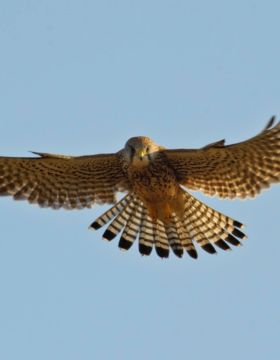 Voici un spectacle étonnant : un oiseau immobile en plein ciel, comme suspendu à un fil, la queue en éventail et les yeux fixés sur sa proie à terre : c’est le vol en « Saint-Esprit » du faucon crécerelle !