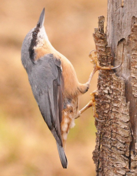 Vers le haut, vers le bas, en oblique le long des troncs d’arbres : l’infatigable maçonne, acrobate comme on n’en a jamais vu, nous appelle : « oui-oui-oui » - c’est la sittelle torchepot !