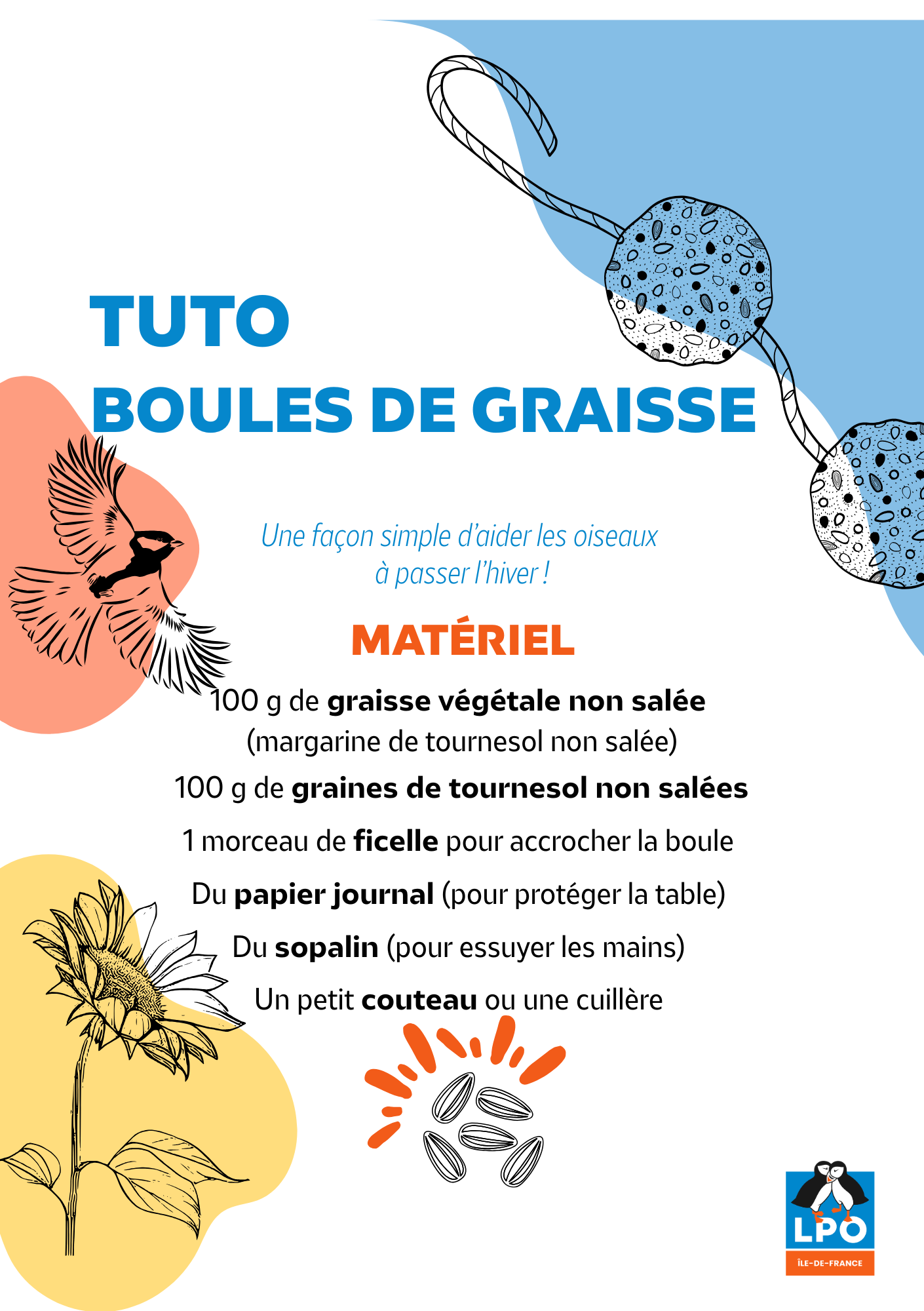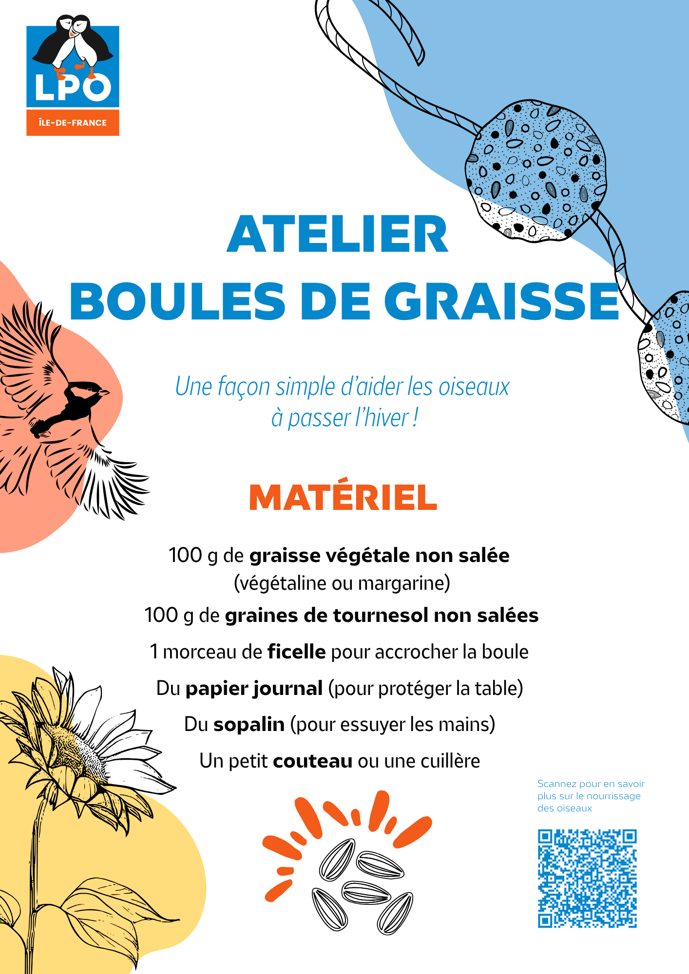 L'"Atelier Boules de Graisse" est réalisable chez vous, avec seulement quelques ingrédients ! Veuillez à utiliser des graines non salées.