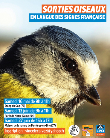 Afin de rendre le programme de sorties de la LPO Île-de-France encore plus accessible, plusieurs balades ornithos en Langue des signes française (LSF) ont été proposées en 2025. Destinées au public sourd signant, elles se sont déroulées au bois de Vincennes, au parc des Buttes-Chaumont et à la réserve naturelle du Grand Voyeux (77).