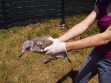 - Attrapez le cou et plaquez les ailes contre le corps de l’oiseau ⚠ grande puissance dans les ailes ; l’idéal est d’être 2 manipulateurs