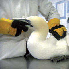 ⚠ Certaines espèces peuvent avoir un bec plus puissant : corneille, pie, goéland... Il est vivement recommandé de porter des gants fins et de tenir l’oiseau à distance du visage du manipulateur et des personnes l’entourant (contention bras tendus)