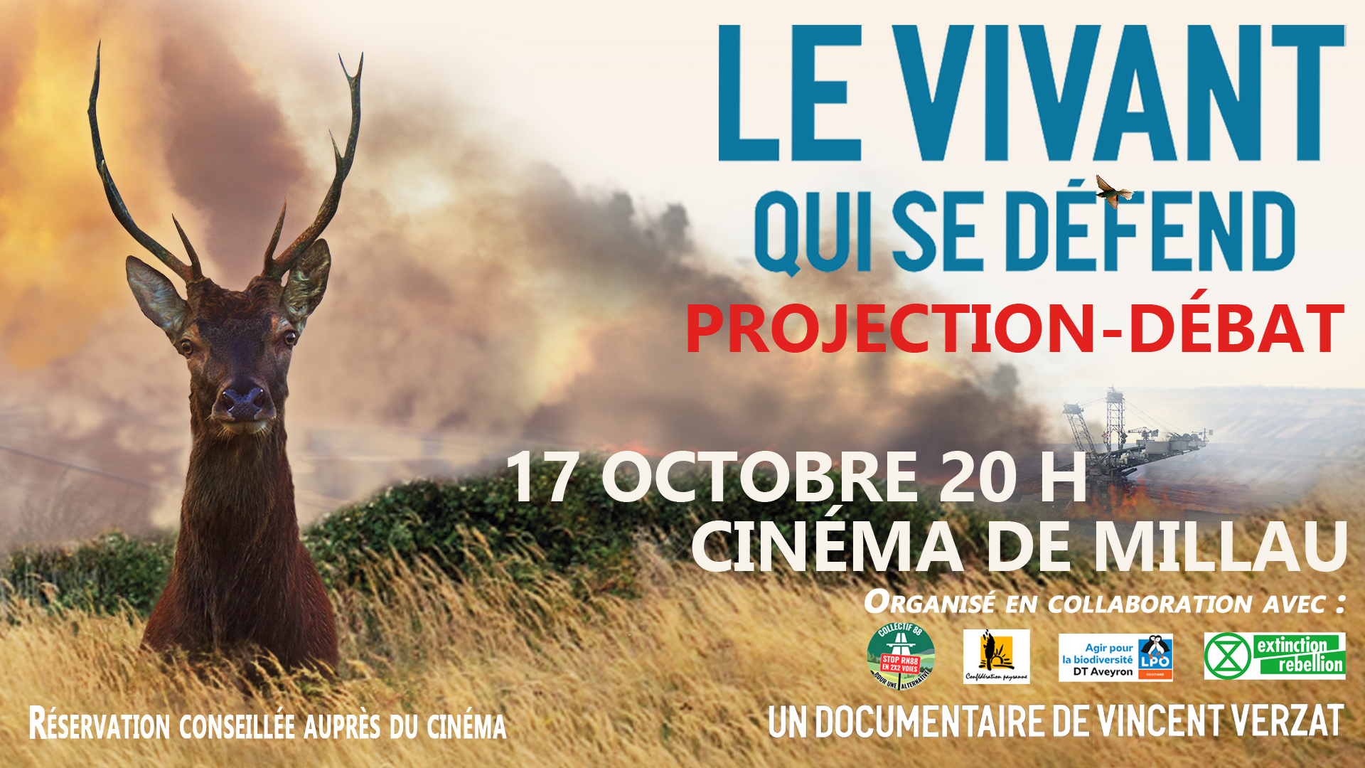 Agenda natureLa délégation aveyronnaise de la LPO et le groupe local d'Extinction Rébellion Millau-Larzac organisent un ciné-débat le 17 octobre à 20H au cinéma de Millau.