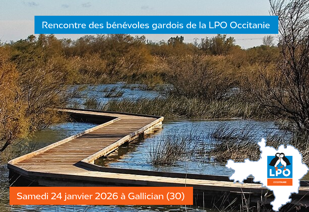 Nous sommes donc heureux de vous inviter à la réunion des bénévoles du groupe LPO Gard de la LPO Occitanie qui aura lieu le samedi 24 janvier 2026 à partir de 9h30 au centre du Scamandre, à Gallician (Lieu-dit les Iscles D179).