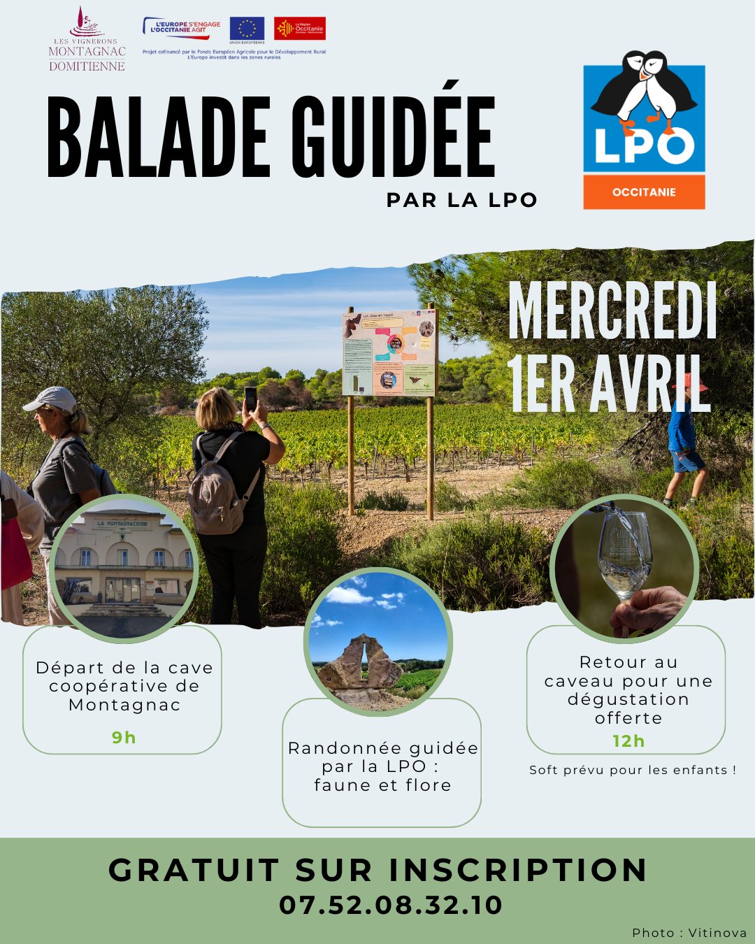 Venez avec nous pour une balade guidée au départ de Montagnac afin de découvrir la faune et la flore de notre région, et terminez cette randonnée par une dégustation offerte au caveau.