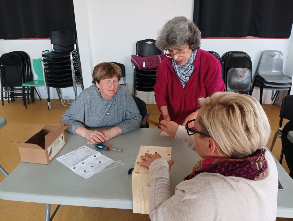 C'est dans la bonne humeur que neuf nichoirs ont été construits ! Ces nichoirs, installés avant la période de nidification, seront utiles pour les mésanges mais aussi pour les Rougegorge familier, Rougequeue, Bergeronnette grise qui apprécient les nichoirs semi-ouverts.