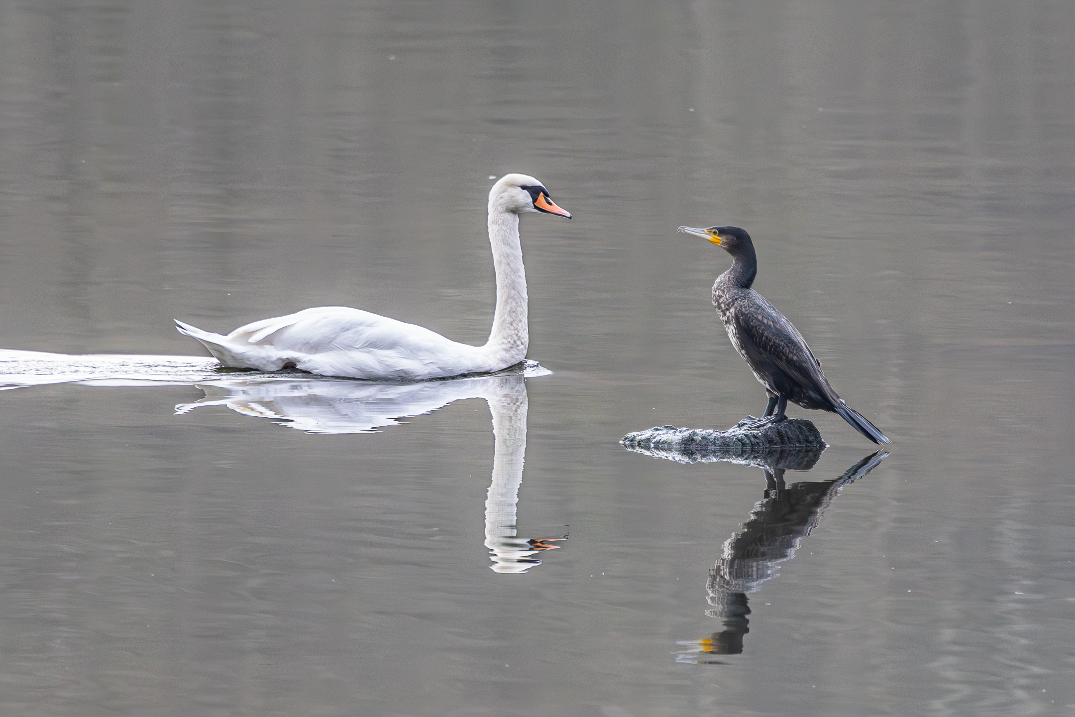 En cette période d'hivernage de nombreux oiseaux d'eau fréquentent cette zone humide, canards et oies, hérons et aigrettes, mouettes et pourquoi pas des oiseaux plus nordiques...