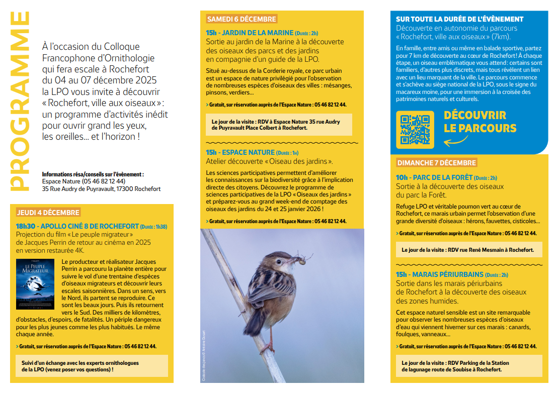 - Projection film culte Le Peuple migrateur en version restaurée 4K, le 4 décembre à 18h30 au cinéma Apollo, suivi d’un échange avec des ornithologues